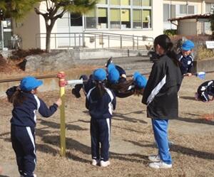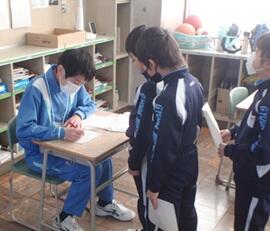 それぞれ1年生、2年生、3年生のクラスに入り、授業で担任の補助をしたり、○つけをしたり、わからないところを教えてあげたりしました。休み時間には一緒に遊んでくれて、小学生たちはいつも以上に楽しそうでした。