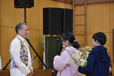 前半は、1年間の振り返りと、中心になってくれた6年生への感謝を伝えました。